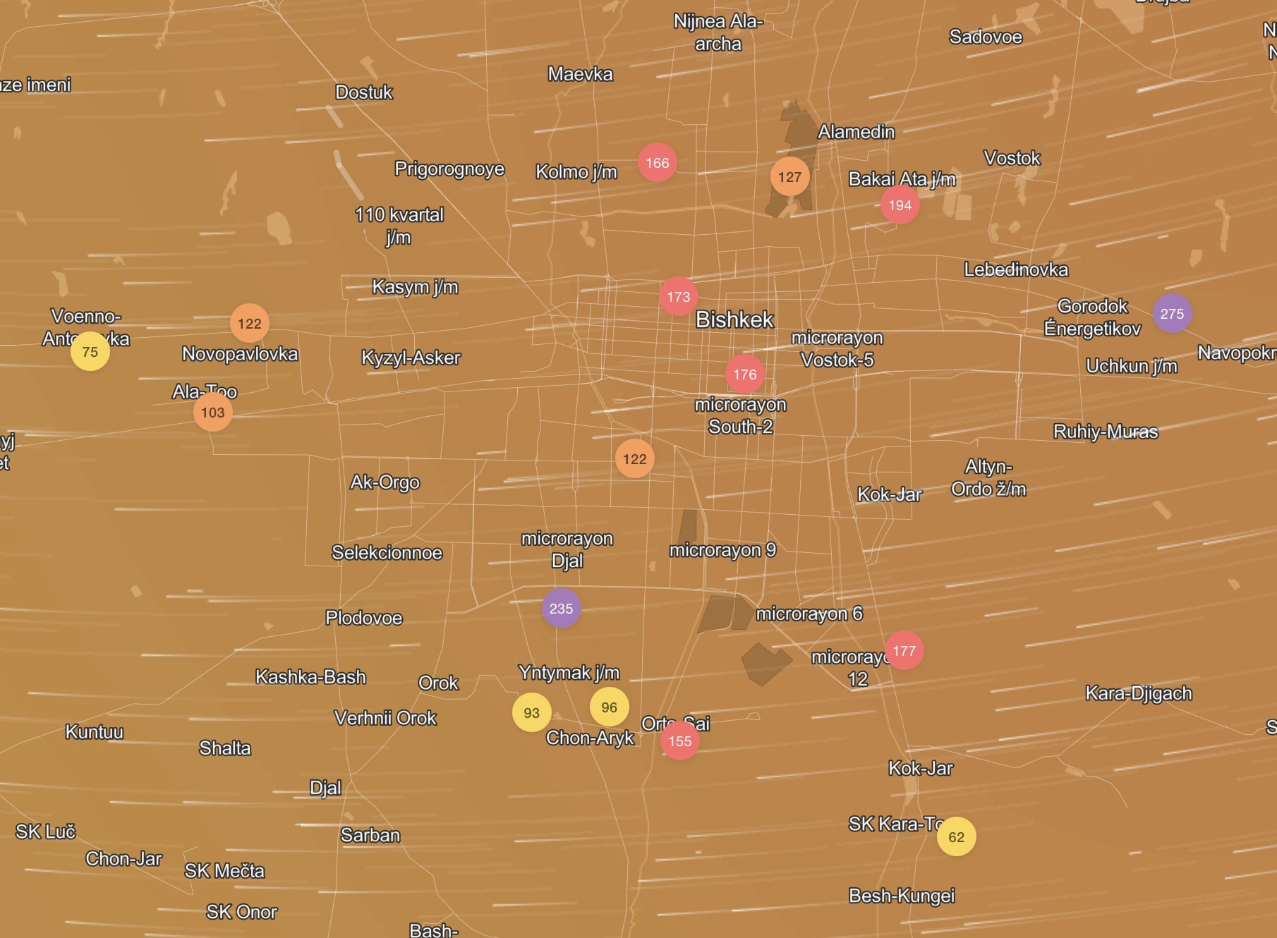 В рейтинге крупнейших городов мира по качеству воздуха World Air Quality на 18.00 Бишкек находится на 19-м месте.
