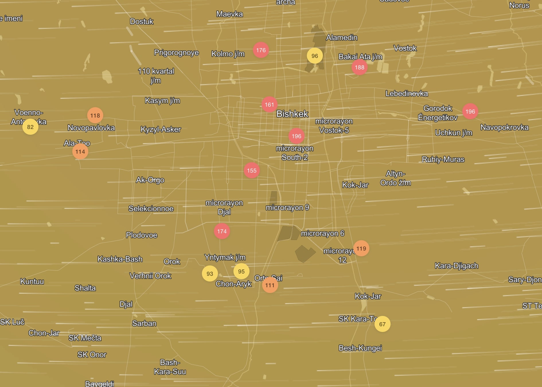 В рейтинге крупнейших городов мира по качеству воздуха World Air Quality на 18.00 Бишкек находится на 20-м месте.