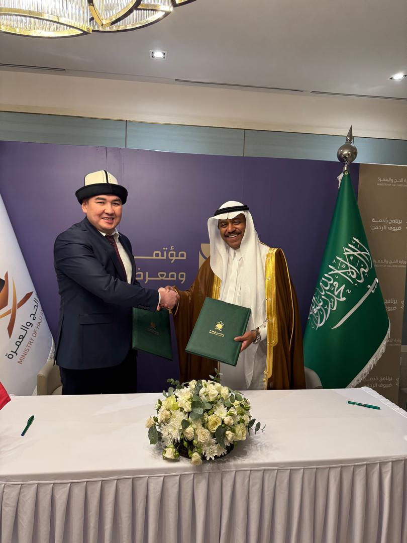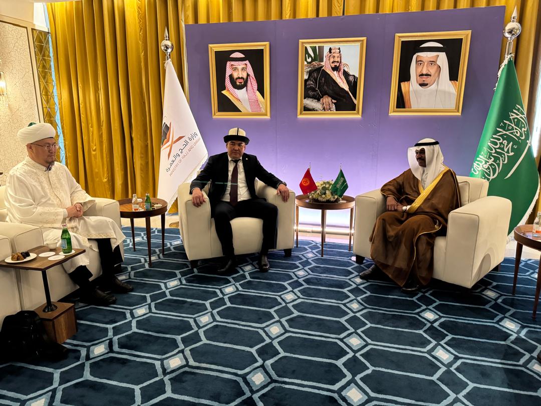 В рамках рабочей поездки они встретились с заместителем министра хаджа Саудовской Аравии доктором Абделем Фаттах Бин Сулейманом, где обсуждались вопросы организации паломничества. По итогам двусторонней встречи подписаны соглашения по организации паломнической деятельности на этот год, в результате чего Кыргызстану выделено 6 тысяч 60 квот для хаджа.
