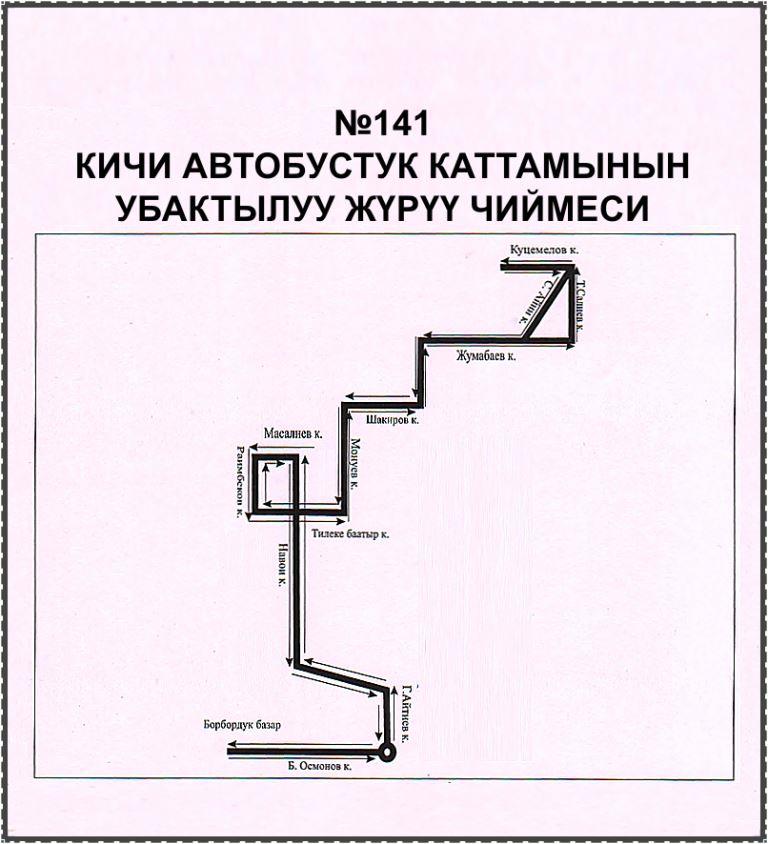 - № 141: улица Жибек Жолу — круговая развязка Барсбека кагана;