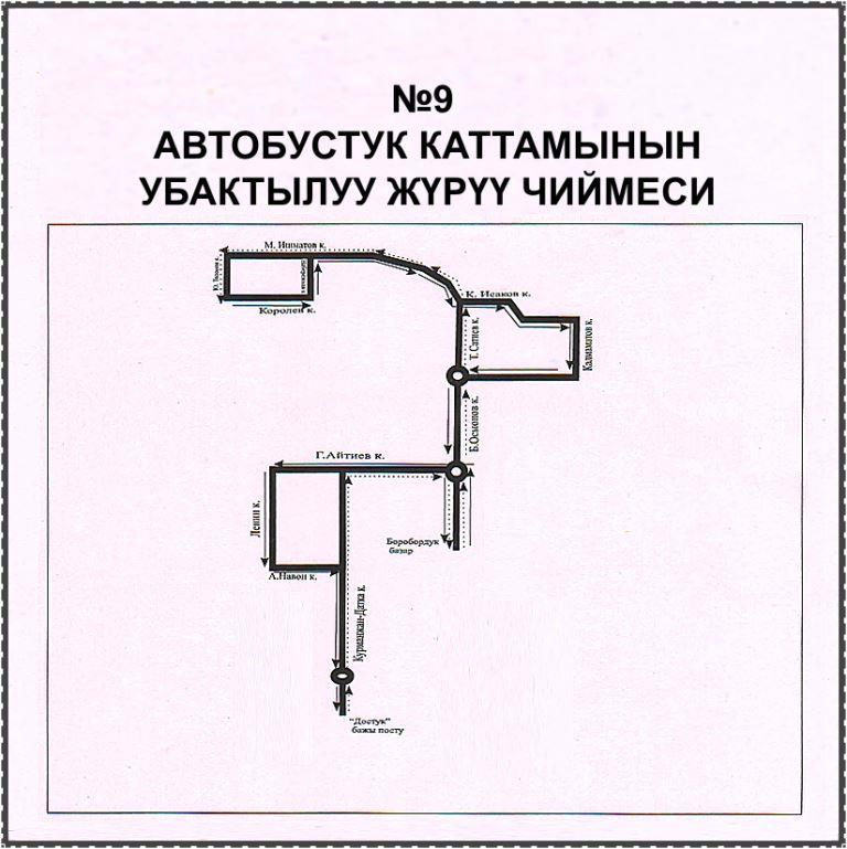 - № 9: улица Алымбека Датки — КПП «Достук»;