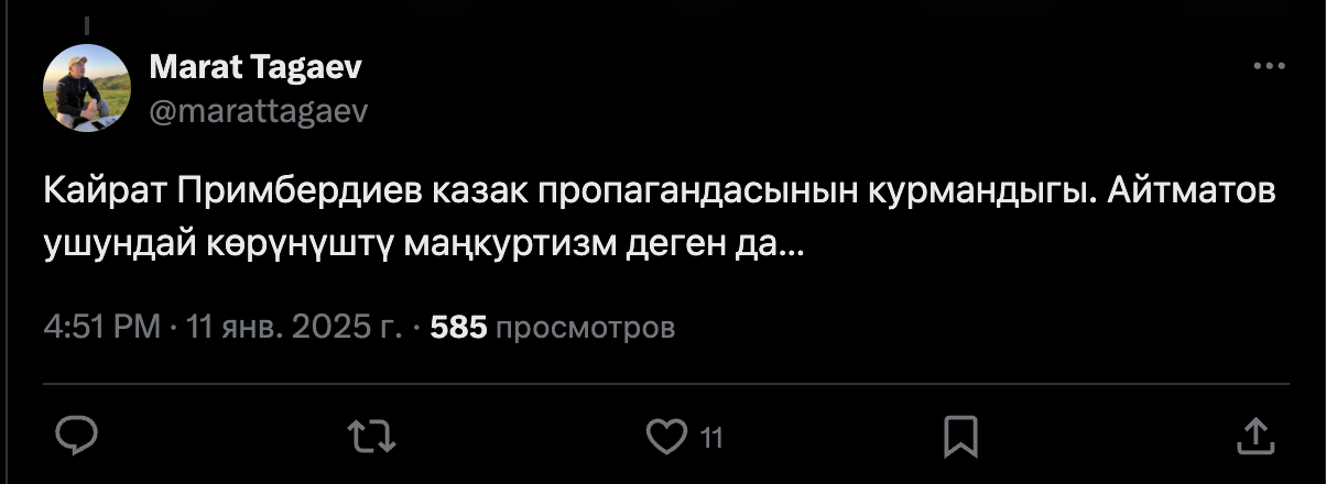 Замминистра культуры КР Марат Тагаев прокомментировал слова певца. Он считает, что артист оказался «под влиянием казахстанской пропаганды».