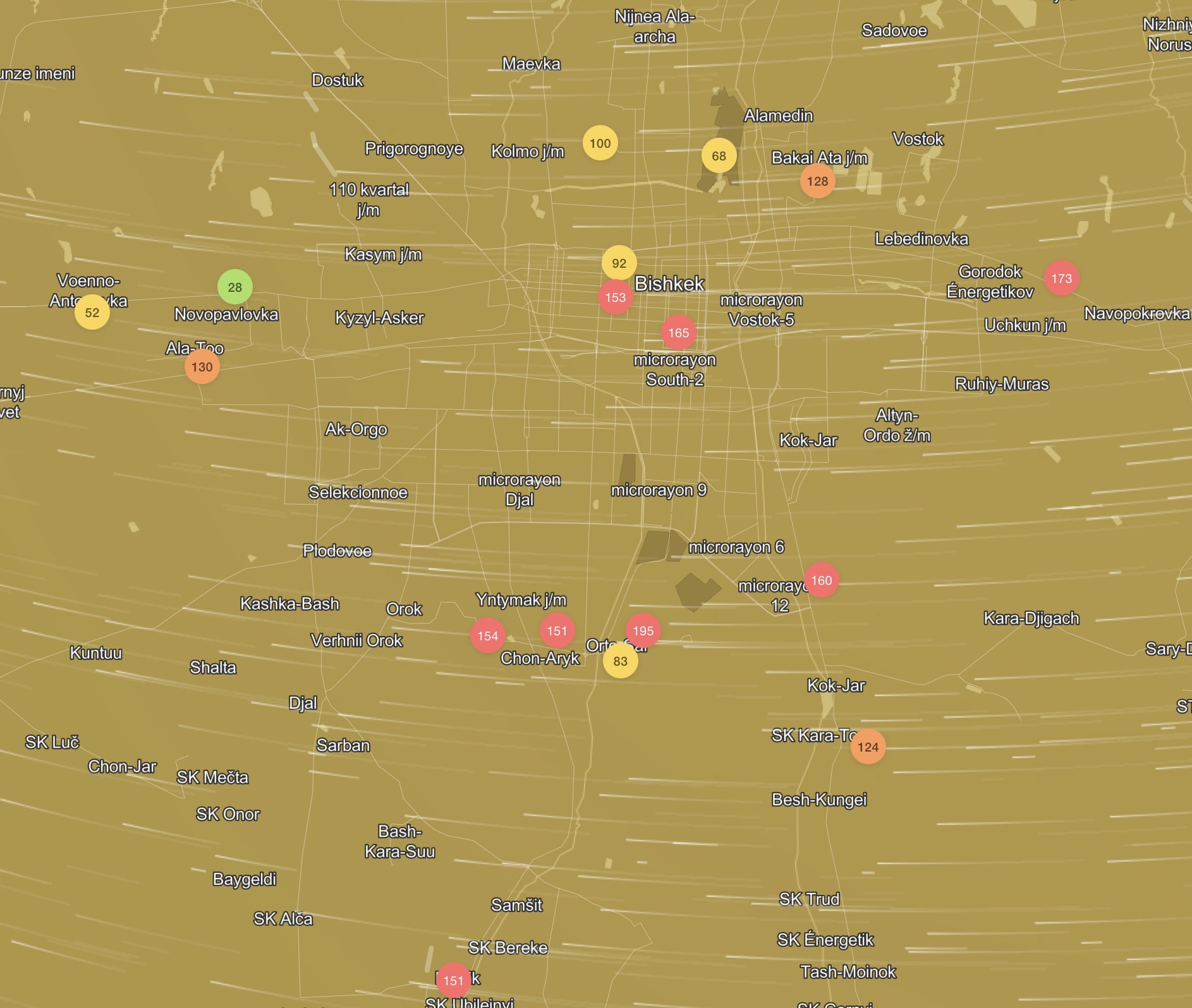 В рейтинге крупнейших городов мира по качеству воздуха World Air Quality на 18.00 Бишкек находится на 19-м месте.