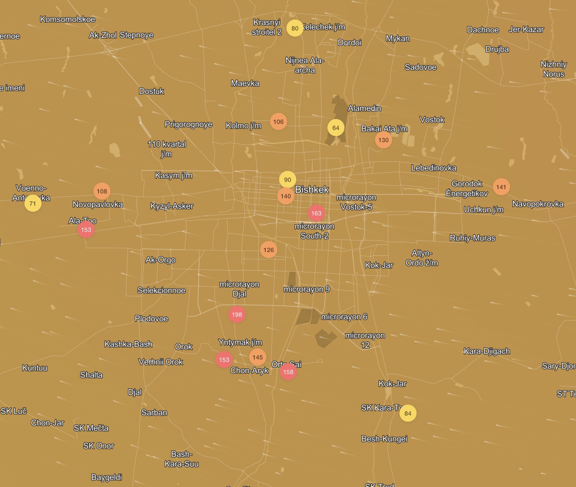 В рейтинге крупнейших городов мира по качеству воздуха World Air Quality на 18.00 Бишкек находится на 21-м месте.