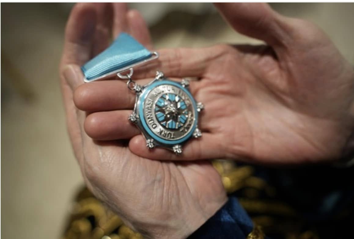 Почетное звание в виде нагрудного знака ученому вручил генеральный секретарь ТЮРКСОЙ Султан Раев. В честь этого Азизу Санжару также переданы символические подарки, олицетворяющие единство тюркских народов. Среди них — кыргызский ак калпак, казахский ханский чапан, узбекский пояс, азербайджанский нагрудной знак «Хары-Бюльбюль», турецкий бастон (посох) как символ аристократичности, а также сборник стихов туркменского поэта Махтумкули.