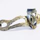 Фрагмент шлема состоит из двух частей, образующих большую часть надбровной дуги. Артефакт украшен позолотой и гранатом, а сложные узоры изображают существо с острыми зубами и большими глазами.