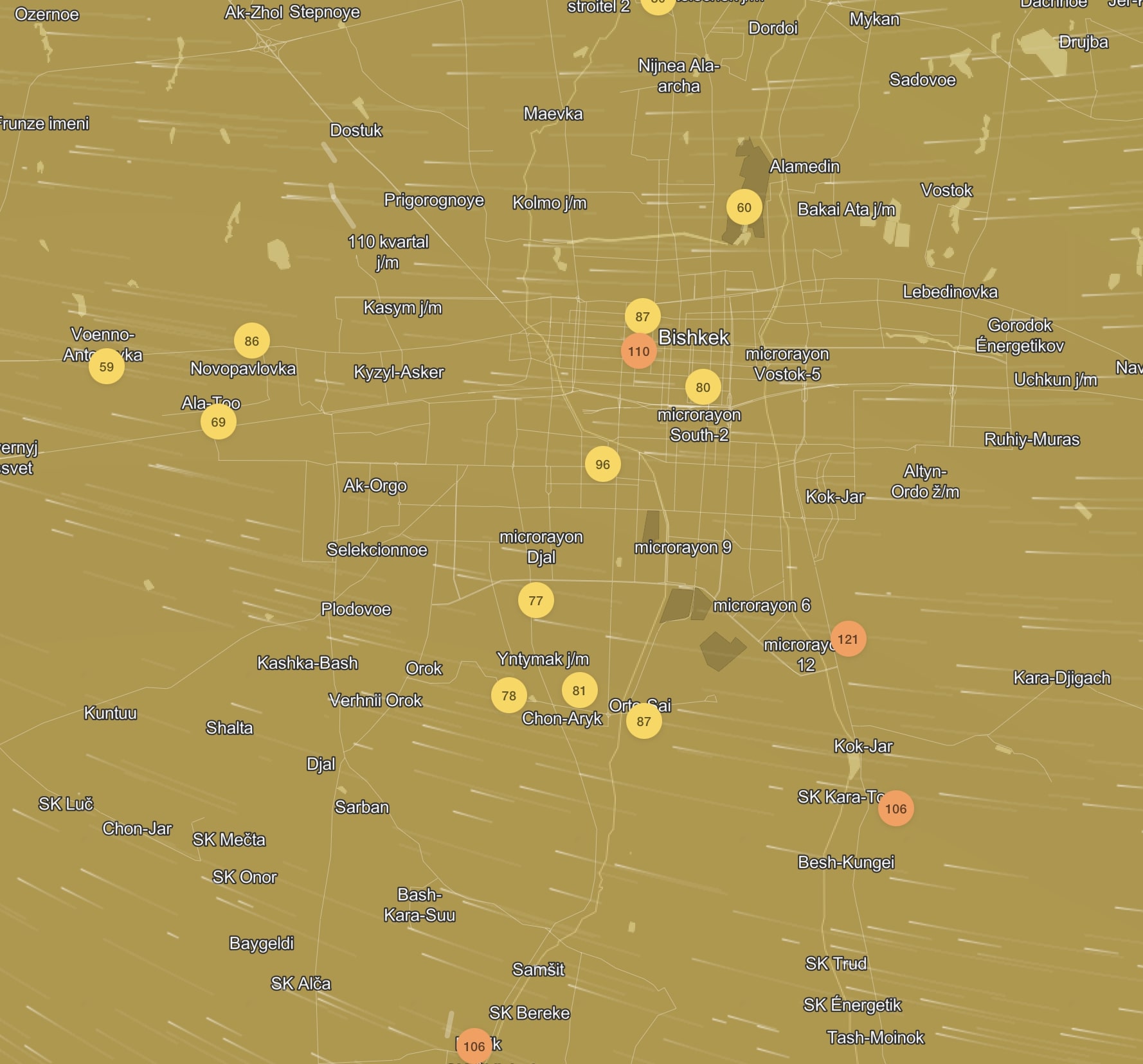 Добавим, что недавно Бишкек стал лидером по загрязнению воздуха в мире. Ранее министр природы Медер Машиев заявил, что в городе смога стало меньше. По его словам, основные причины смога — это отсутствие катализаторов у 85 процентов автомобилей в стране, увеличение количества жилмассивов вокруг столицы, хаотичное, неплановое строительство и вырубка деревьев.