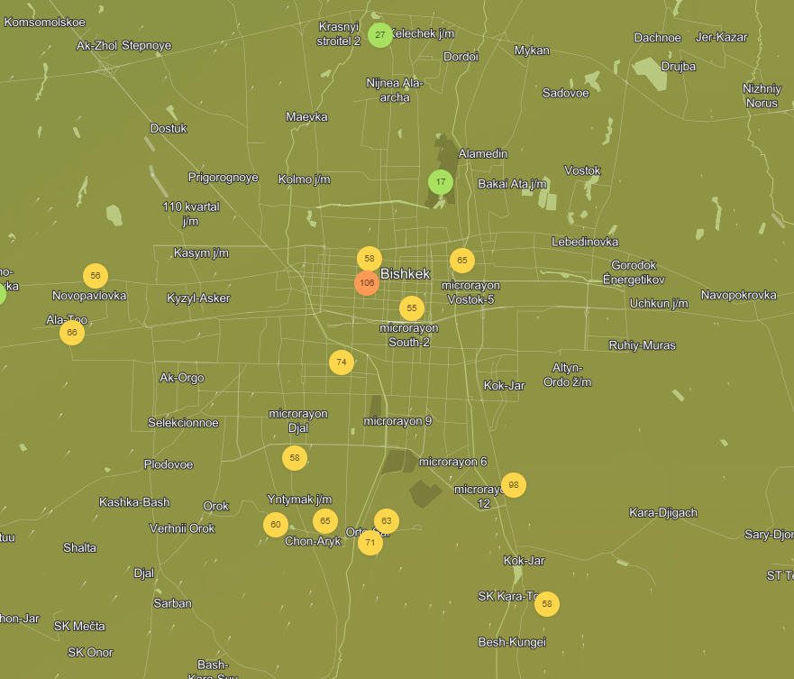 Добавим, что недавно Бишкек стал лидером по загрязнению воздуха в мире. Ранее министр природы Медер Машиев заявил, что в городе смога стало меньше. По его словам, основные причины смога — это отсутствие катализаторов у 85 процентов автомобилей в стране, увеличение количества жилмассивов вокруг столицы, хаотичное, неплановое строительство и вырубка деревьев.