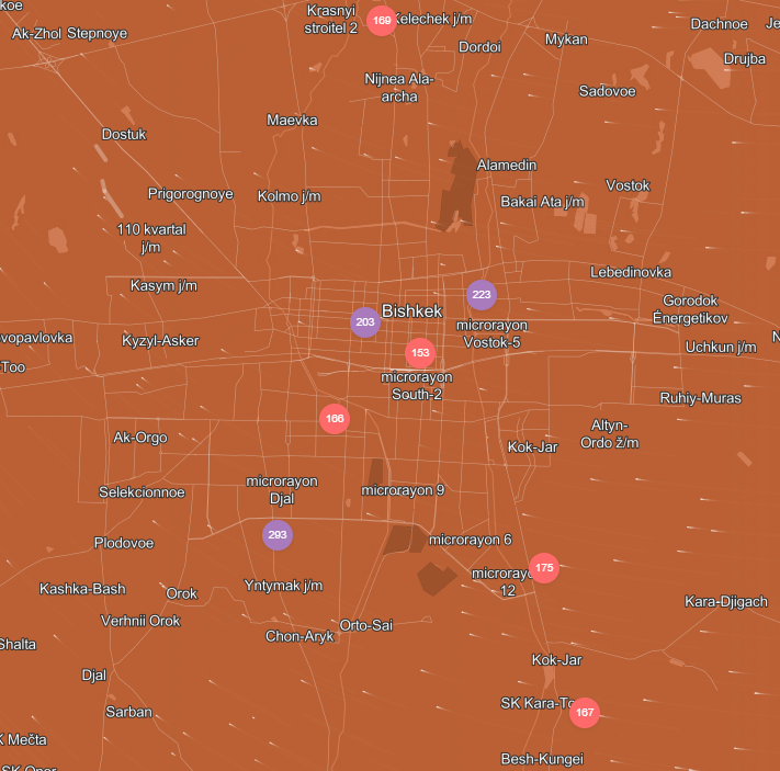 Добавим, что недавно Бишкек стал лидером по загрязнению воздуха в мире. Ранее министр природы Медер Машиев заявил, что в городе смога стало меньше. По его словам, основные причины смога — это отсутствие катализаторов у 85 процентов автомобилей в стране, увеличение количества жилмассивов вокруг столицы, хаотичное, неплановое строительство и вырубка деревьев.
