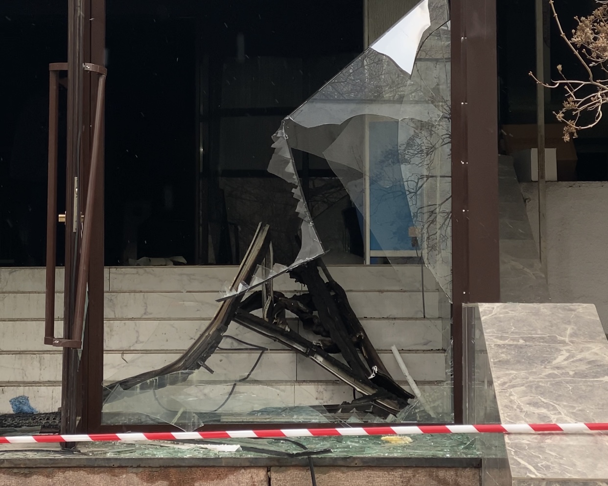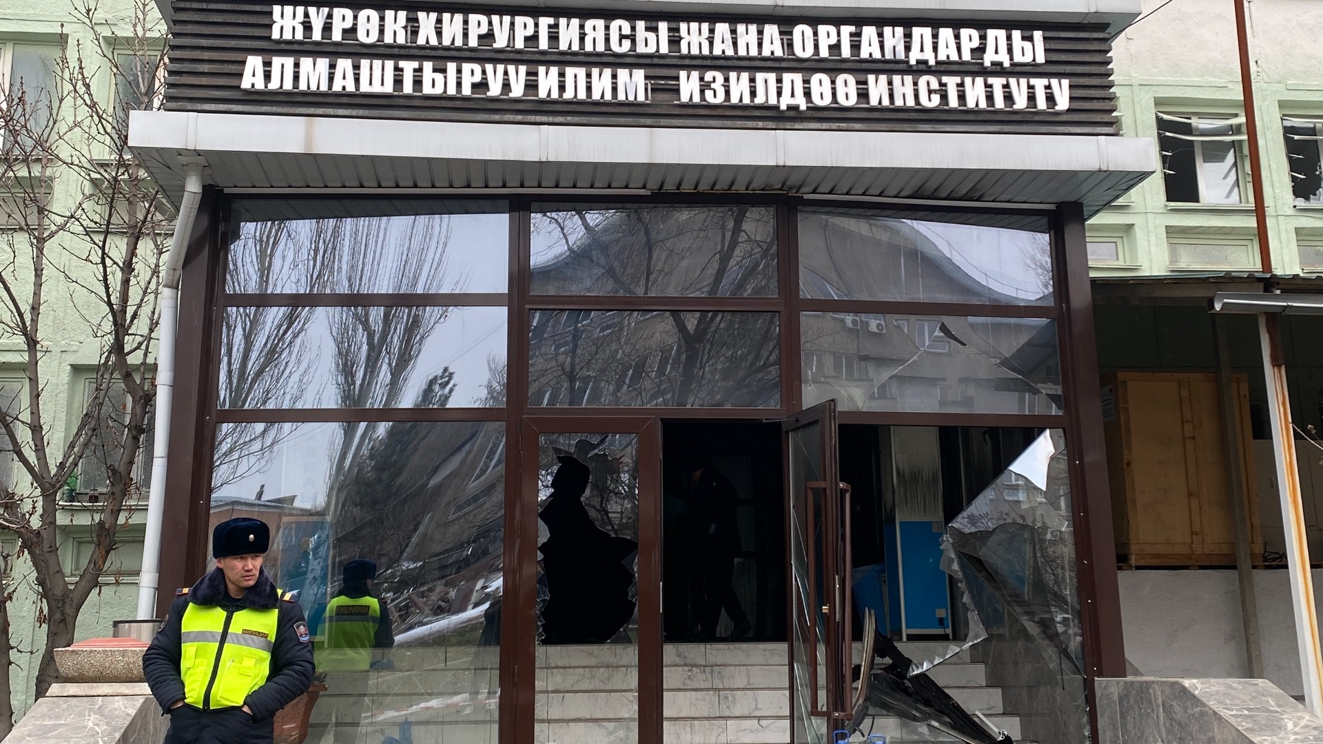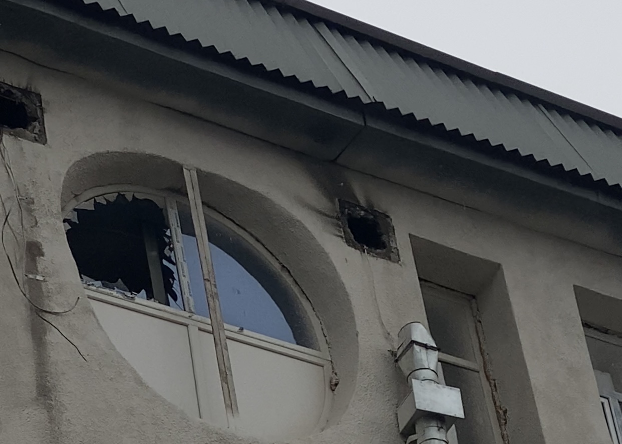 В медучреждении выбиты окна и двери, стены покрыты гарью. В настоящее время здание оцеплено, на месте находятся сотрудники милиции и МЧС.