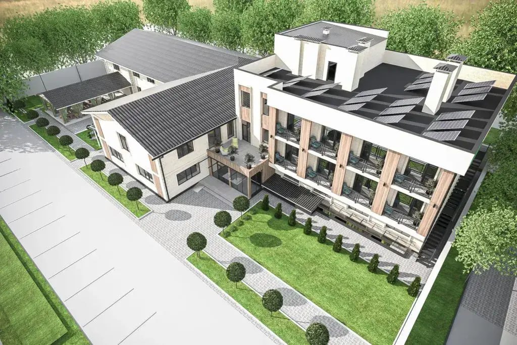 Главной особенностью гостиничного комплекса станет использование геотермальной энергии для отопления и горячего водоснабжения, а также установка солнечных панелей для выработки электроэнергии.