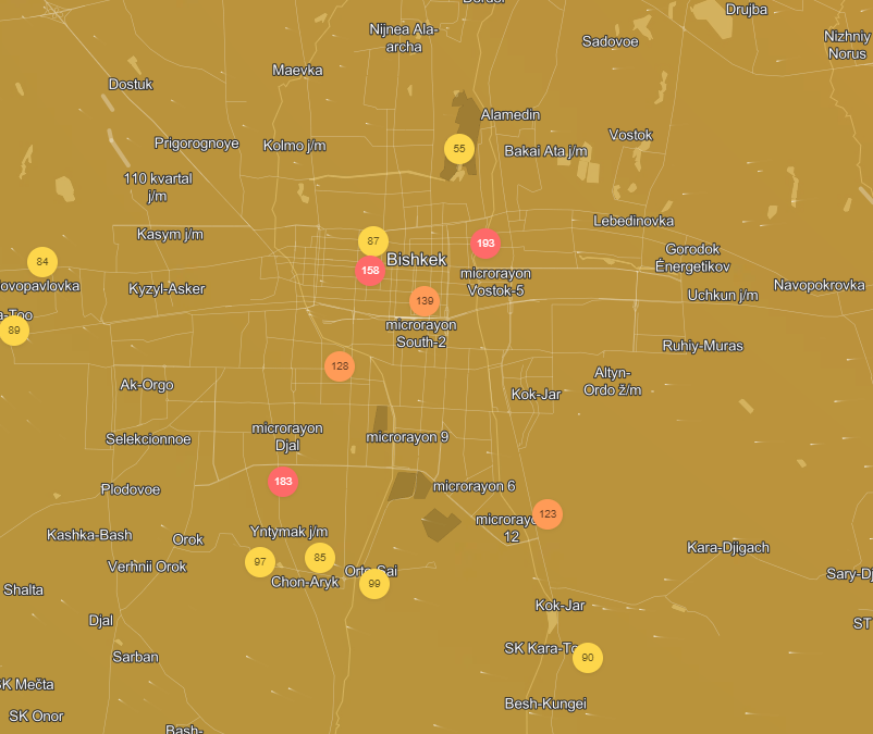 Добавим, что недавно Бишкек стал лидером по загрязнению воздуха в мире. Ранее министр природы Медер Машиев заявил, что в городе смога стало меньше. По его словам, основные причины смога — это отсутствие катализаторов у 85 процентов автомобилей в стране, увеличение количества жилмассивов вокруг столицы, хаотичное, неплановое строительство и вырубка деревьев.
