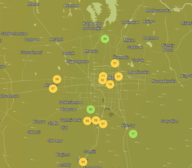 Добавим, что недавно Бишкек стал лидером по загрязнению воздуха в мире. Ранее министр природы Медер Машиев заявил, что в городе смога стало меньше. По его словам, основные причины смога — это отсутствие катализаторов у 85 процентов автомобилей в стране, увеличение количества жилмассивов вокруг столицы, хаотичное, неплановое строительство и вырубка деревьев.