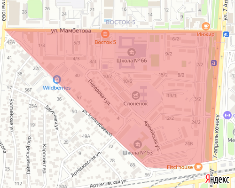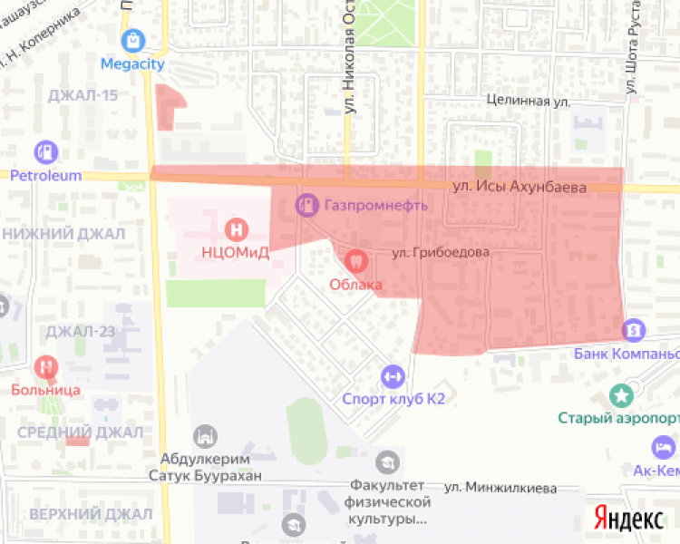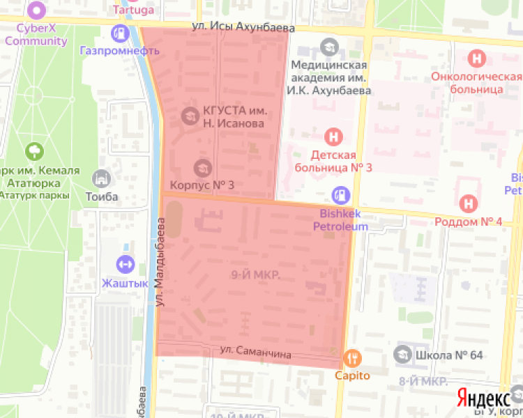 - с 10.00 до 20.00 — район, ограниченный улицами Кийизбаева, Мамбетова, Курманджан Датки;