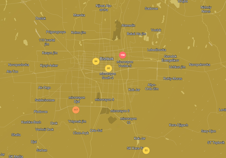 Добавим, что недавно Бишкек стал лидером по загрязнению воздуха в мире. Ранее министр природы Медер Машиев заявил, что в городе смога стало меньше. По его словам, основные причины смога — это отсутствие катализаторов у 85 процентов автомобилей в стране, увеличение количества жилмассивов вокруг столицы, хаотичное, неплановое строительство и вырубка деревьев.