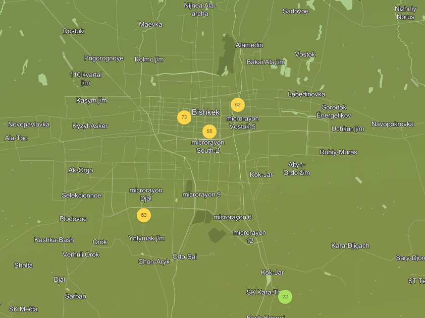 Добавим, что недавно Бишкек стал лидером по загрязнению воздуха в мире. Ранее министр природы Медер Машиев заявил, что в городе смога стало меньше. По его словам, основные причины смога — это отсутствие катализаторов у 85 процентов автомобилей в стране, увеличение количества жилмассивов вокруг столицы, хаотичное, неплановое строительство и вырубка деревьев.