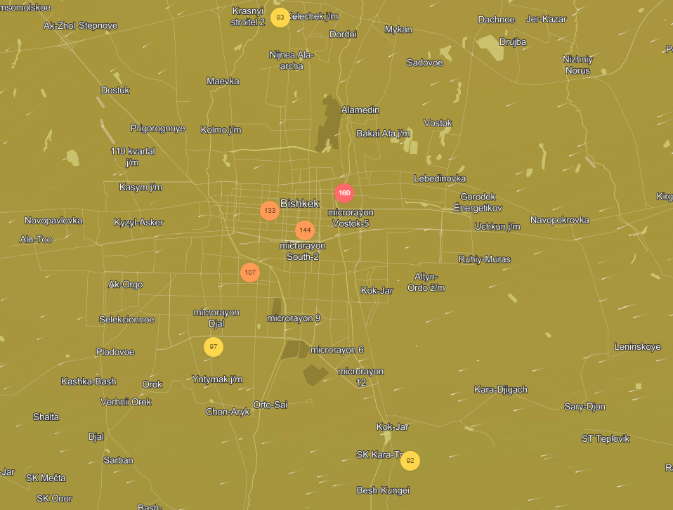 Добавим, что недавно Бишкек стал лидером по загрязнению воздуха в мире. Ранее министр природы Медер Машиев заявил, что в городе смога стало меньше. По его словам, основные причины смога — это отсутствие катализаторов у 85 процентов автомобилей в стране, увеличение количества жилмассивов вокруг столицы, хаотичное, неплановое строительство и вырубка деревьев.