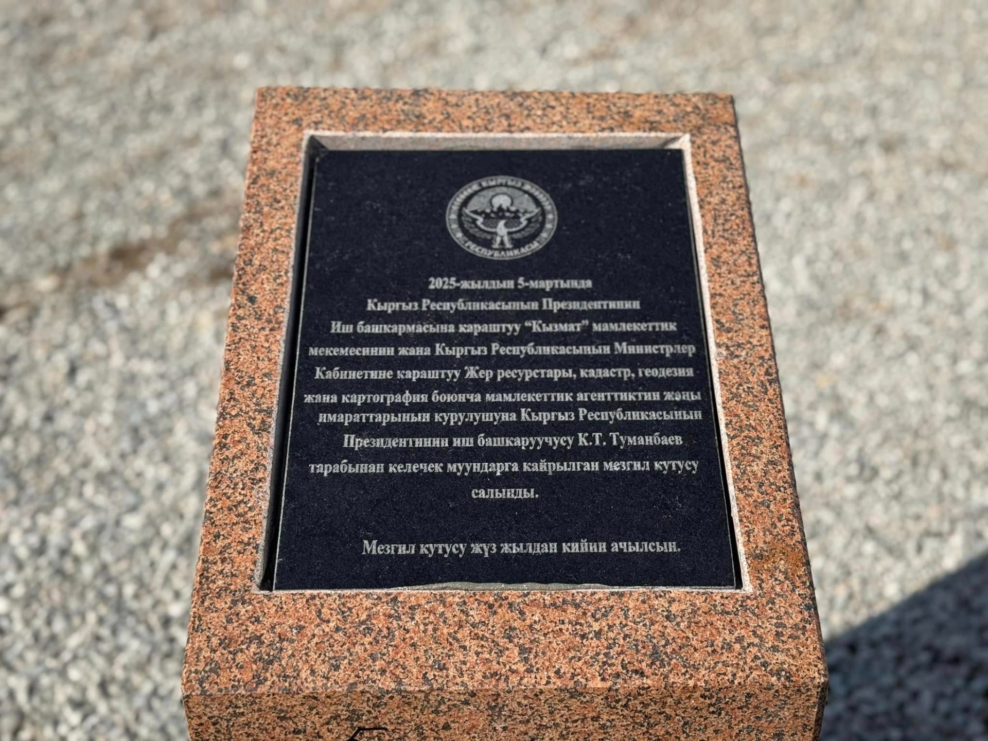 Управляющий делами главы государства Каныбек Туманбаев заложил капсулу.