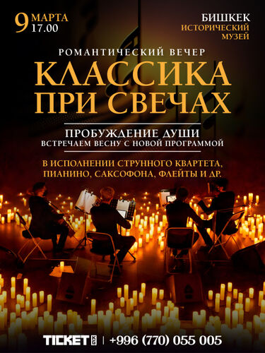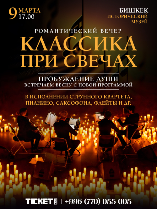 При свете тысячи свечей в исполнении струнного квартета, пианино, флейты и саксофона прозвучат мелодии Людовика Эйнауди, Макса Рихтера, группы Beatles и другие.