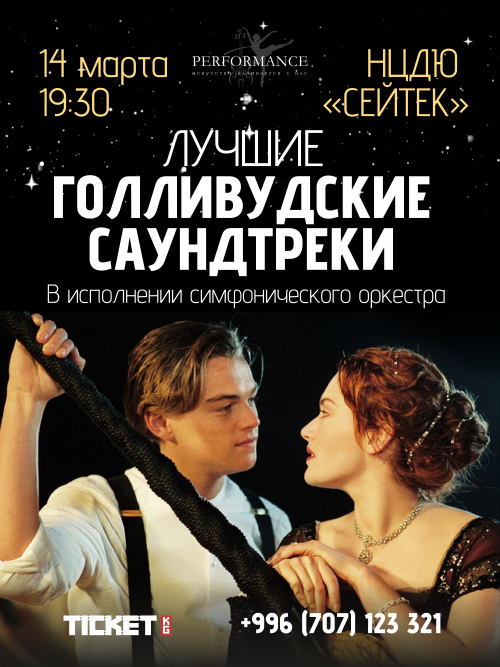 Вы услышите в исполнении симфонического оркестра под управлением Урмата Тентимишова оригинальные саундтреки к самым известным художественным фильмам и насладиться живым звучанием музыкальных инструментов.