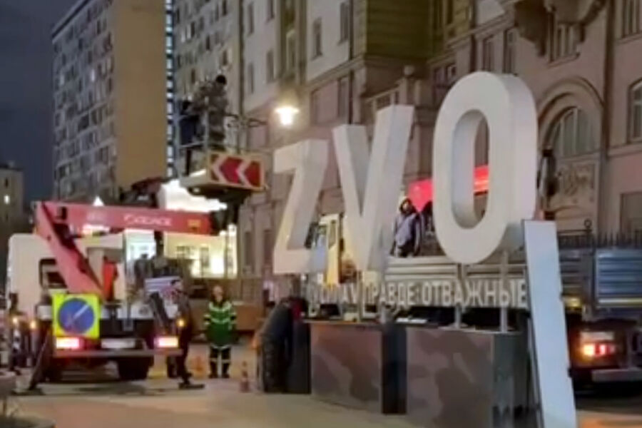 СМИ рассказали, что рабочие начали убирать два патриотических стенда — надпись «Мы вместе», окрашенную в цвета российского флага, и буквы ZVO.