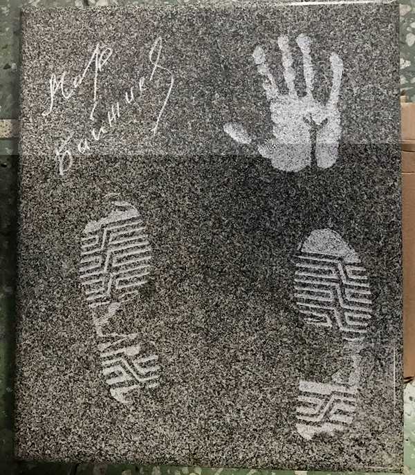 В 2017-м на кыргызской Аллее славы установили плиту с отпечатками ладоней и ног Мара Байджиева.