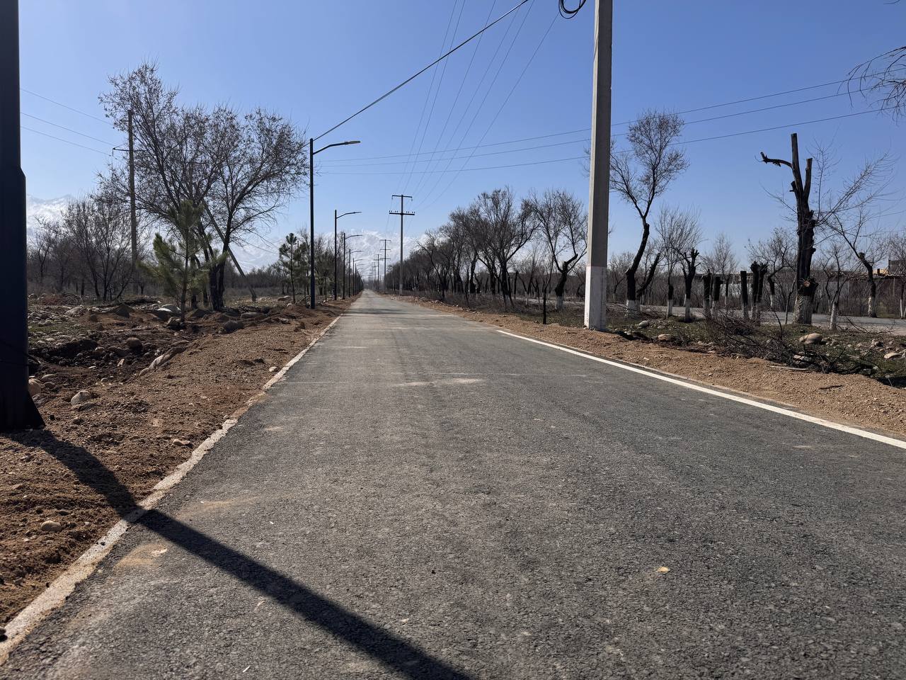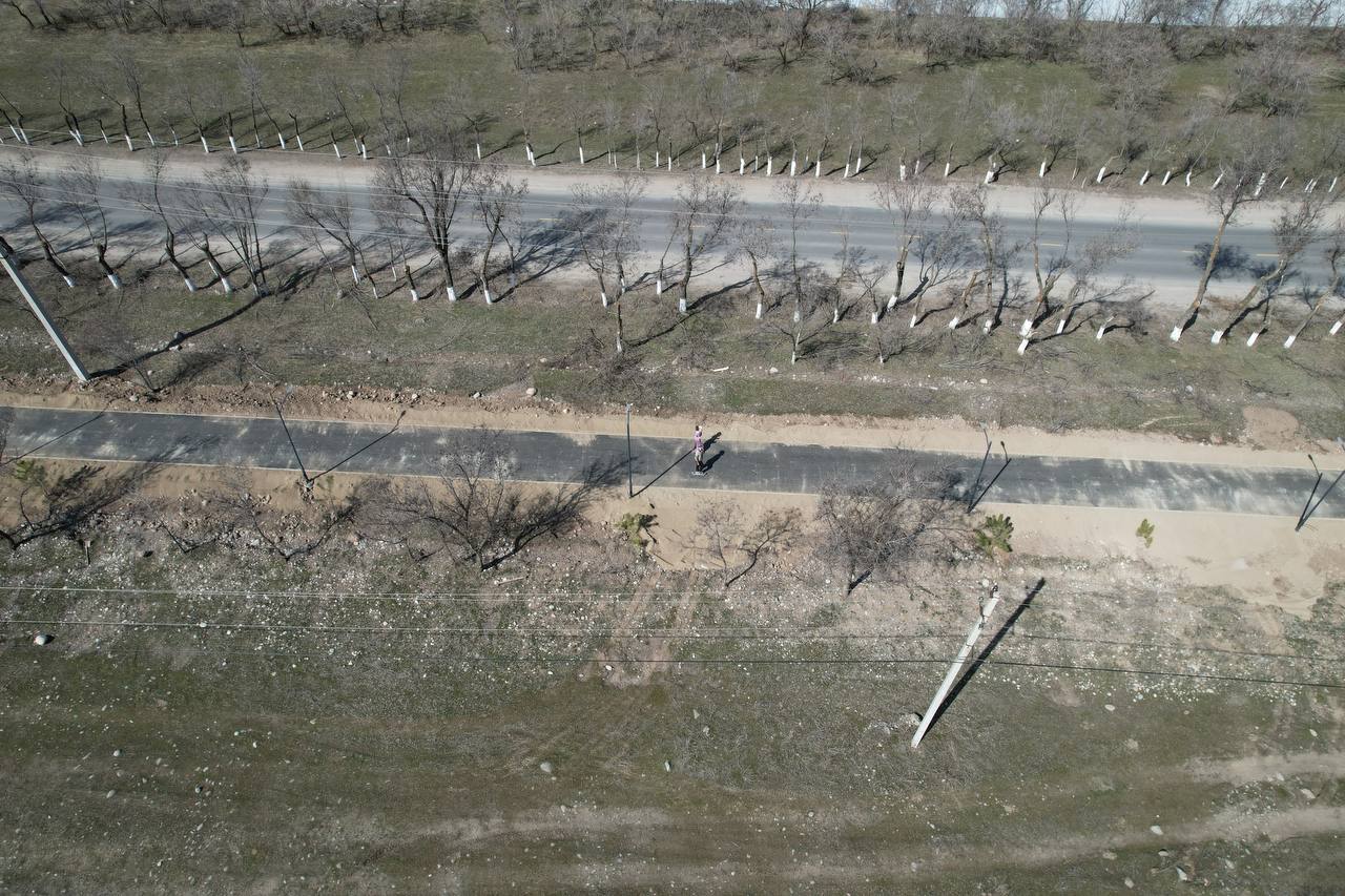 В селе Байтик, что выше Бишкека, построили длинную велодорожку. Она начинается от арки села, где организована просторная парковка, и по плану должна идти до природного парка «Ала-Арча».