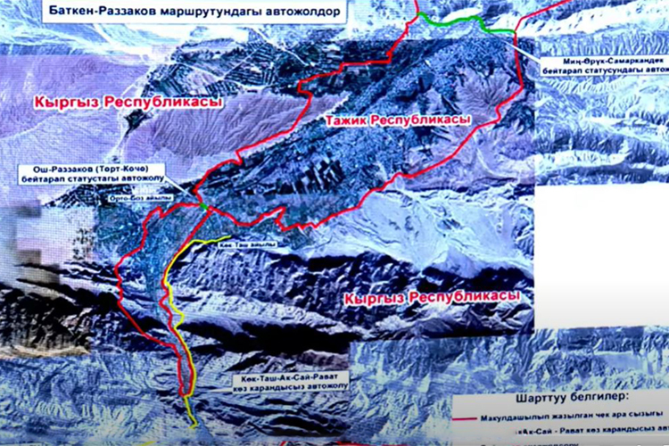 Камчыбек Ташиев показал на карте, где именно расположены дороги, и рассказал, почему для жителей Баткенской области, в частности Лейлекского района, важны эти договоренности.