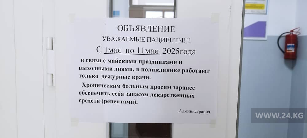 Как сообщили 24.kg в Министерстве здравоохранения, в целях обеспечения своевременной качественной медико-санитарной помощи населению республики в нерабочие праздничные дни с 1 по 9 мая подготовлен приказ № 384 от 11 апреля 2025 года.Руководителям организаций, координаторам здравоохранения областей, а также Бишкека и Оша поручено: