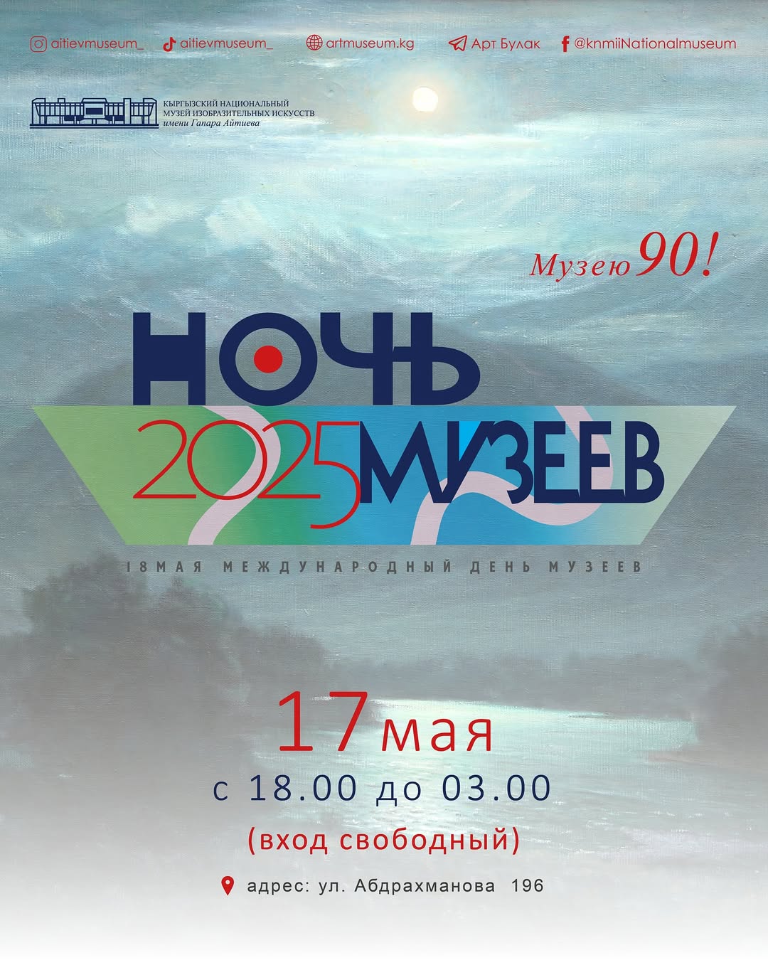 В Бишкеке 17 мая состоится акция «Ночь музеев». Об этом сообщается на страницах Кыргызского национального музея изобразительных искусств имени Гапара Айтиева в соцсетях.