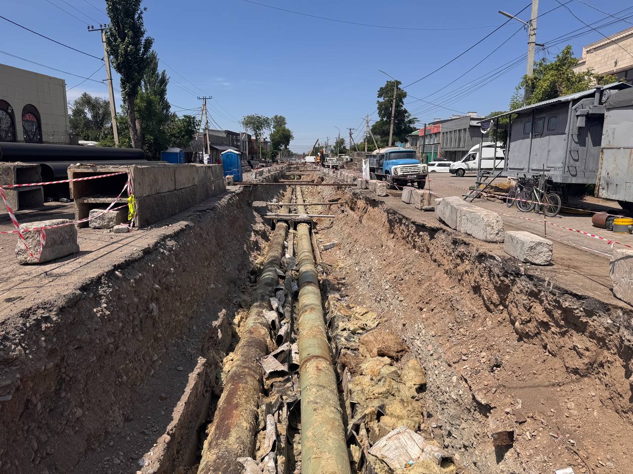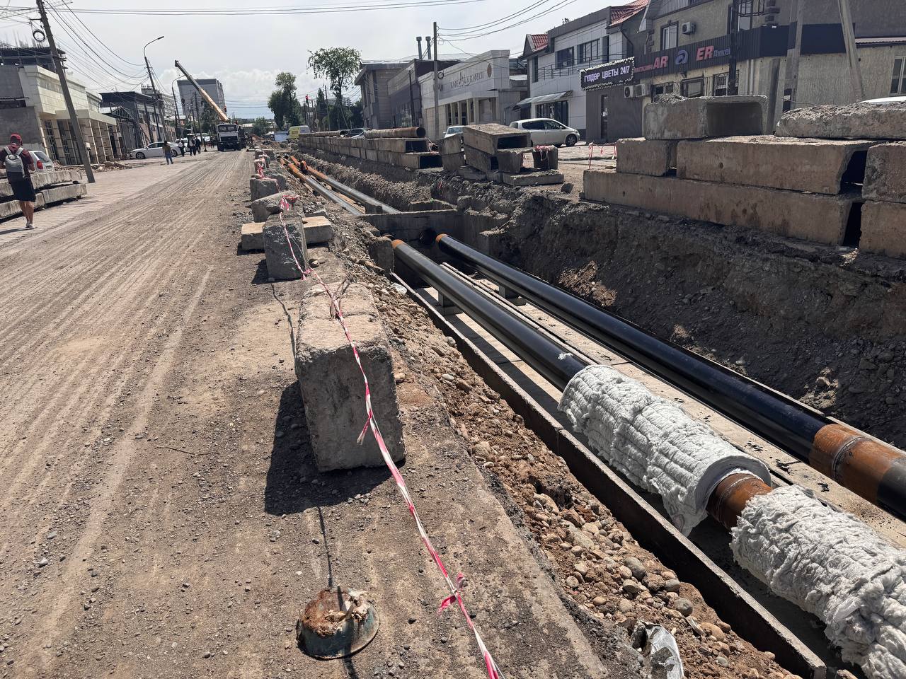 Далее столичный мэр прибыл на улицу Курманжан Датки, где от проспекта Чуй до улицы Салиевой реконструируют тепловую сеть. Одновременно с этим расширяют дорогу. То есть вместо четырех полос там будет шесть. Подрядчики отрапортовали, что работы идут по графику, и, возможно, все сделают даже раньше срока.