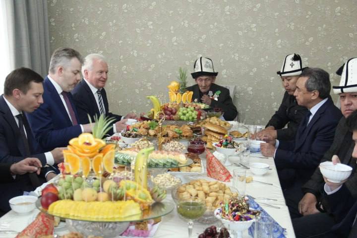 Российская делегация во главе с начальником управления президента РФ по межрегиональным и культурным связям с зарубежными странами Игорем Масловым навестила в Нарынской области Кыргызстана ветерана Великой Отечественной войны Сатынды Жапарова. В этом году ему исполняется 100 лет — он единственный оставшийся в живых ветеран, проживающий в регионе.