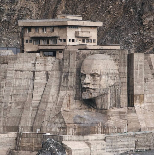 Одним из самых необычных памятников Ленину является гигантская голова, встроенная в плотину Кировского водохранилища в Таласской области. Строительство водохранилища началось в 1960-х годах и продолжалось до 1976-го. Оно возведено для орошения земель Таласской долины и соседнего Казахстана.