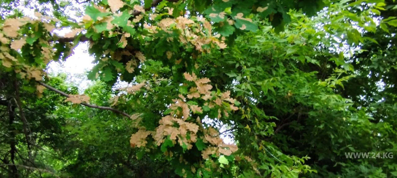Отмечено, что в Бишкеке ежегодно проводится комплексная обработка деревьев от вредителей. В 2025-м работы прошли с 28 апреля по 10 мая.