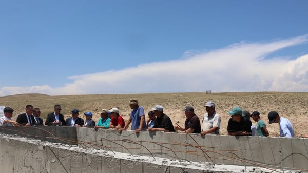 Глава ведомства Равшанбек Сабиров и страновой директор ВПП ООН в КР Кожиро Накай посетили село Исакеев, где промониторили реализацию проекта по строительству бассейна для системы капельного орошения.