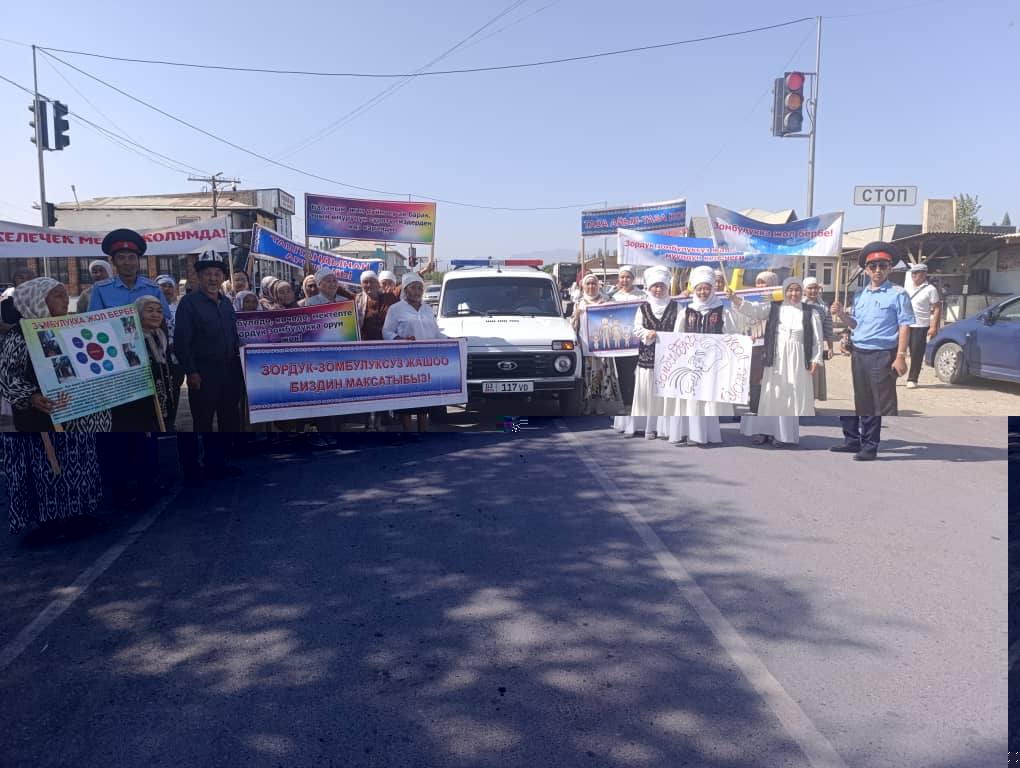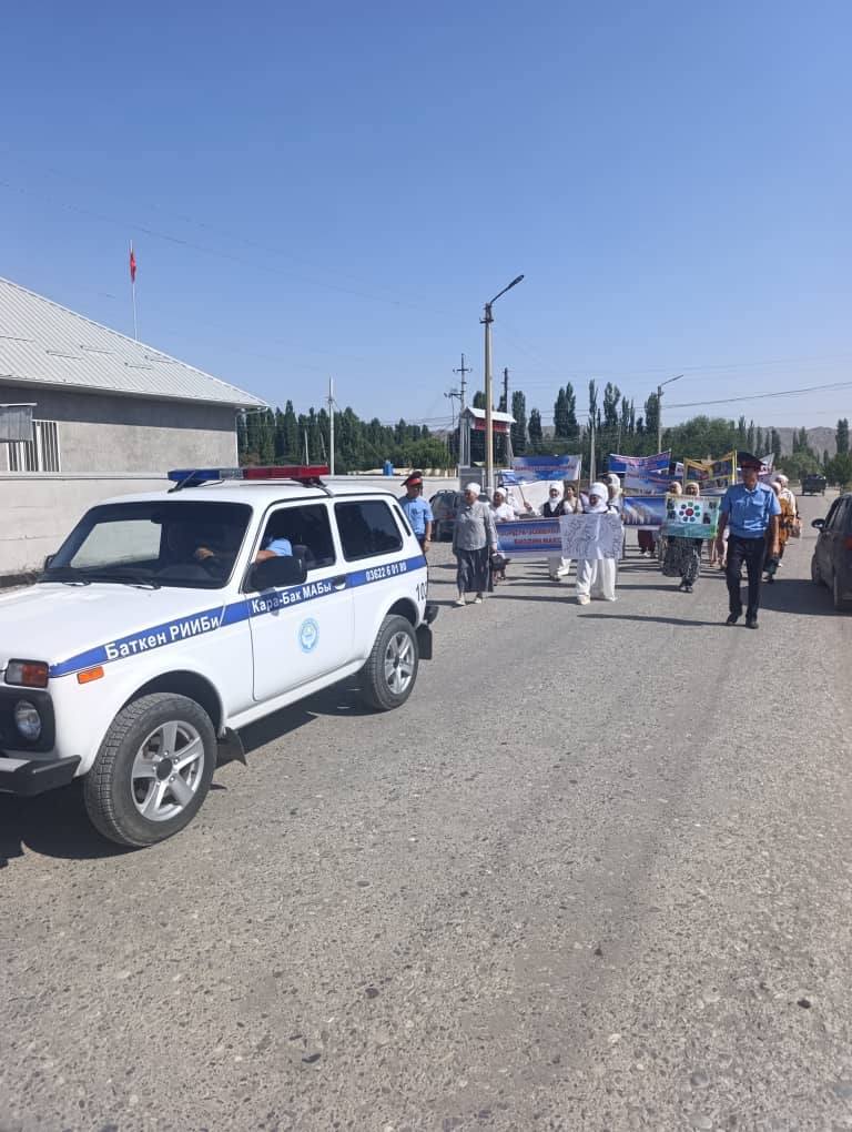 В мирной акции участовали представители айыл окмоту, учителя и местные жители. Во время марша участники несли плакаты с надписью «Мы против насилия» и обращались к общественности с призывами о мире, правовой ответственности и предотвращении абьюза.