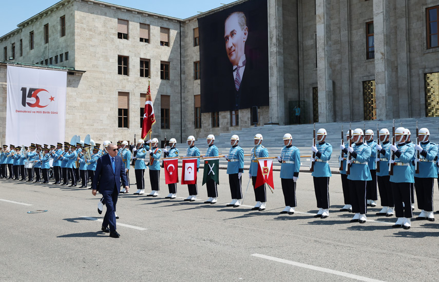 «Вы, не омрачив доверие народа, как подобает Великому собранию, не допустили ни малейшей тени на этот мандат. От своего имени и от имени всей нации я благодарю всех депутатов — без различия партий, которые в ту ночь поддержали борьбу за независимость и будущее. Жертвы не были напрасны. Турция без террора, которую мы строим шаг за шагом, будет их наследием. По мере освобождения нашей республики от полувекового террористического гнета она начнет подниматься во всех сферах — экономике, обороне, развитии, безопасности, внутренней и внешней политике. Турция без террора откроет путь к региону без террора», — сказал лидер Турецкой Республики.