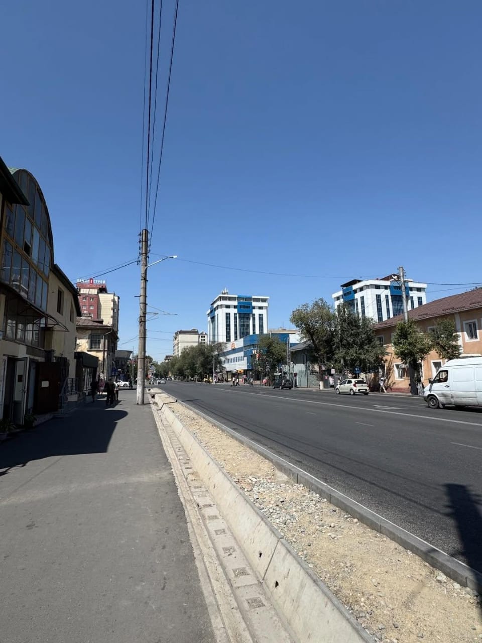 По его словам, при ремонте улиц важно сразу планировать и озеленение. Вокруг в основном старые деревья, новых саженцев почти нет. Тень — большая редкость, а ведь именно она делает городскую среду комфортной.