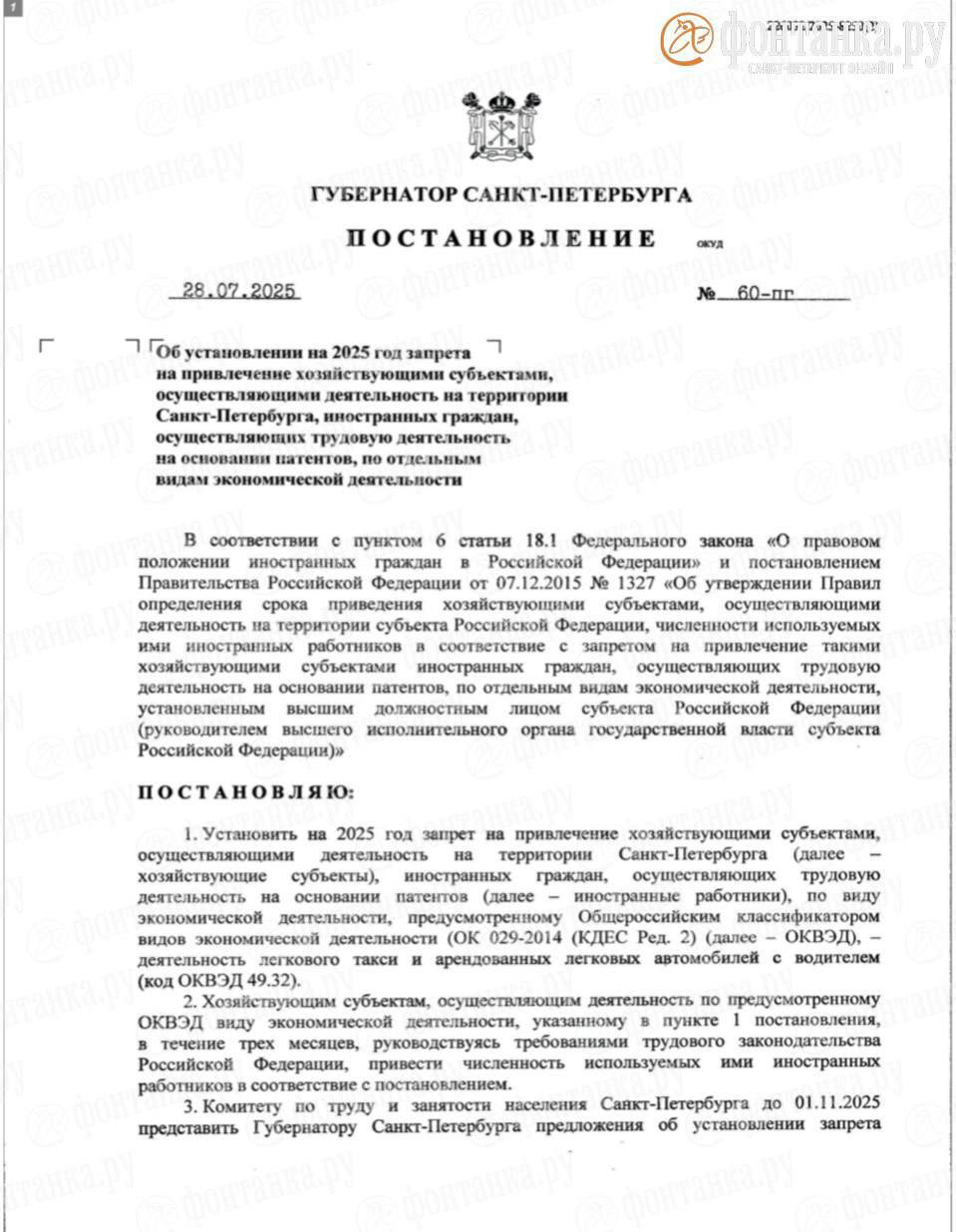В Санкт-Петербурге все-таки запретили трудовым мигрантам работать таксистами. Губернатор города Александр Беглов подписал постановление, согласно которому работающим по патентам иностранцам будет запрещено водить такси.