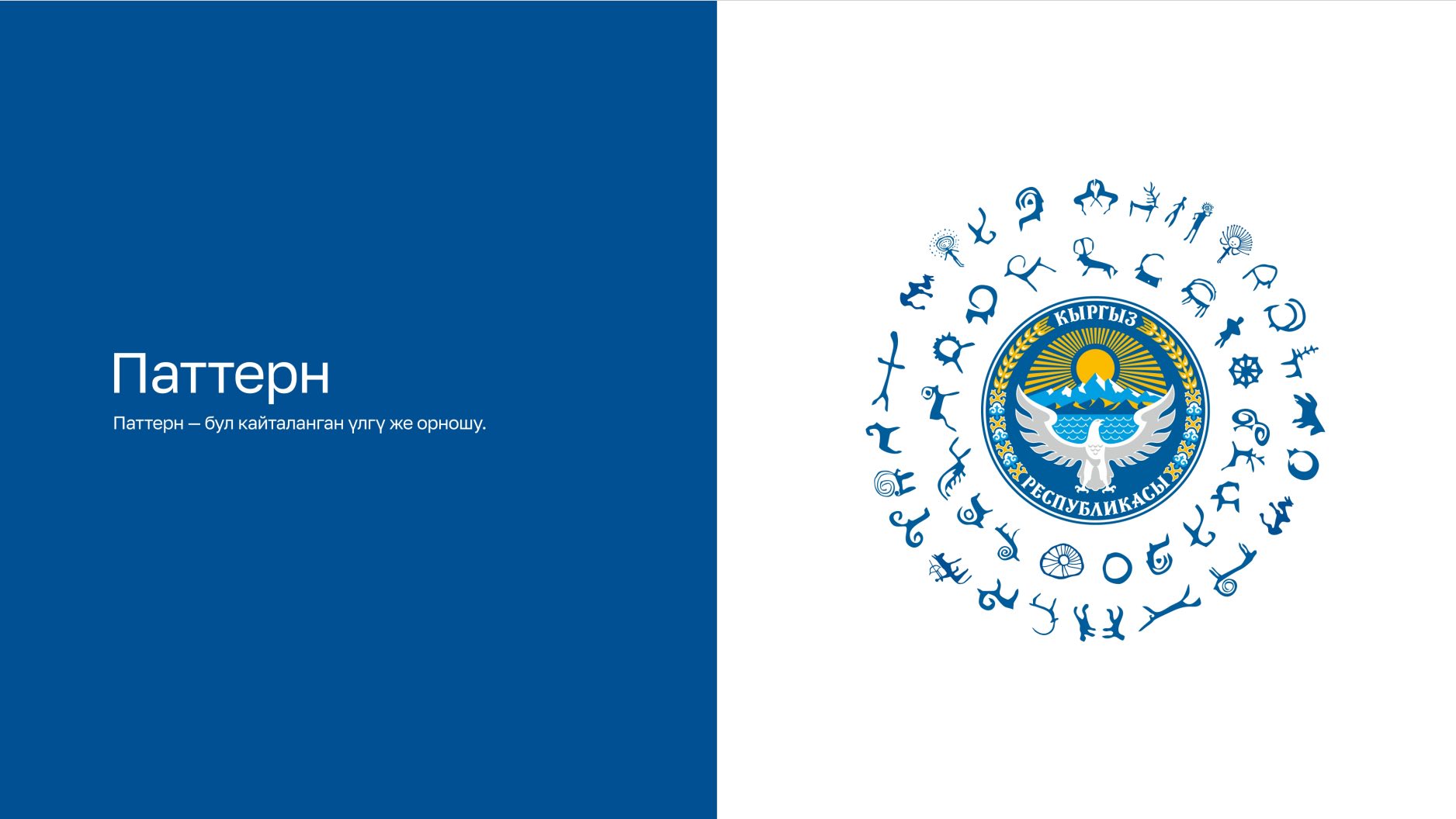 В качестве ключевого элемента новой айдентики выбраны древние петроглифы. Эти изображения, выбитые на камнях, — бесценное историческое наследие, оставленное предками. Это не просто рисунки — за каждым символом стоит быт, обычаи, мировоззрение и культура древнего кыргызского народа.