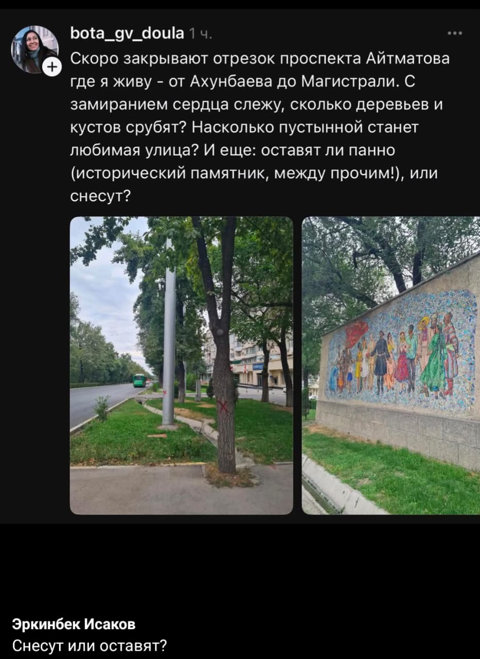 - Реконструкция проспекта Чингиза Айтматова началась в 2024 году и реализуется поэтапно. Проект предусматривает расширение дороги до шести полос движения, устройство тротуаров, ливневок и обновление инженерных сетей.