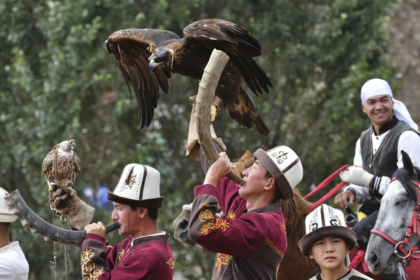 По данным агентства, сотни гостей стали свидетелями зрелищных выступлений беркутчи — охотников с ловчими орлами, а также соревнований по стрельбе из лука, скачкам и традиционной кыргызской борьбе.
