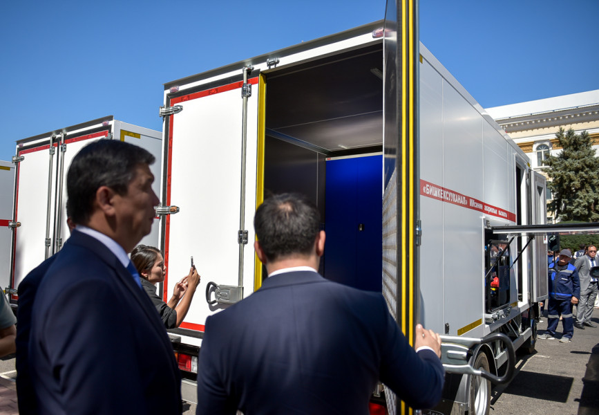 Мэр Айбек Джунушалиев отметил, что в целях развития столицы, улучшения сервиса и предоставления качественных услуг бишкекчанам власти города передают структурным подразделениям новую спецтехнику.