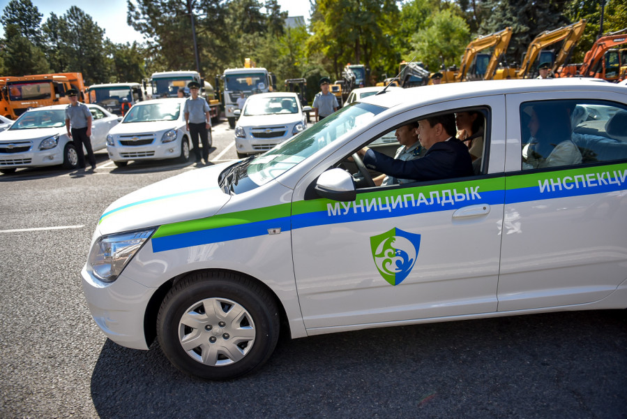 Так, для муниципальных предприятий «Бишкекводоканал» (21), «Бишкекасфальтсервис» (16), «Бишкекгорлифт» (2), «Бишкекский городской транспорт» (6), муниципальной инспекции (20) и управления по контролю за землепользованием (10) передали 75 единиц спецтехники, среди которых автовышка, самосвал, эвакуатор, погрузчик, водовоз, а также служебные машины Chevrolet Cobalt и пикап.