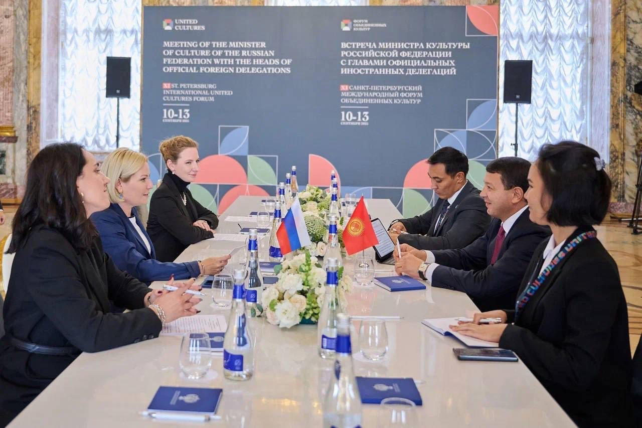 В Кыргызстане пройдут Дни культуры России. Подготовку к мероприятию обсудили министр культуры, информации и молодежной политики КР Мирбек Мамбеталиев и министр культуры Российской Федерации Ольга Любимова. Встреча состоялась в рамках XI Форума объединенных культур.