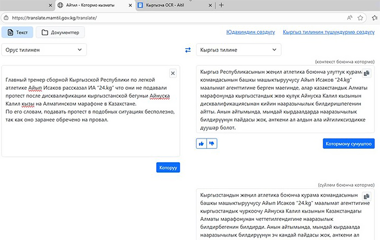 Сайт Aitil.kg экономит кучу времени тем, кто работает с текстом, переводами, аудио и видеозаписями с использованием кыргызского языка. Он отличный переводчик для тех, кто плохо владеет или не знает иностранные языки.