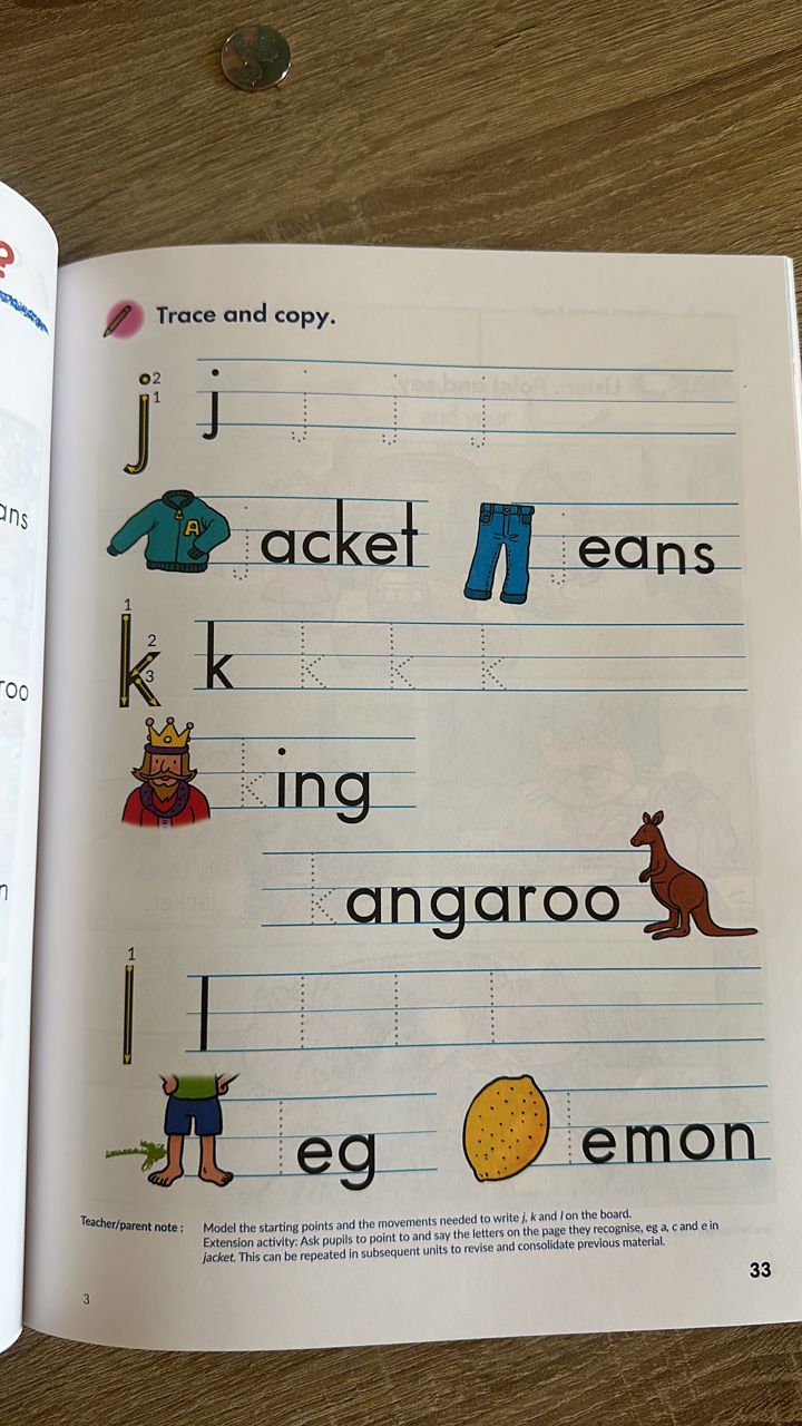 В этом упражнении ученики должны ручкой или карандашом обвести пунктирные линии, чтобы завершить рисунок. Для запоминания букв, ученикам нужно обвести их ручкой по пунктирной линии.Родители школьников решили собраться и сделать копии воркбуков, но в типографии им сказали, что печать одной копии обойдется в 1 тысячу сомов, и к тому же они боятся браться за работу из-за авторских прав.