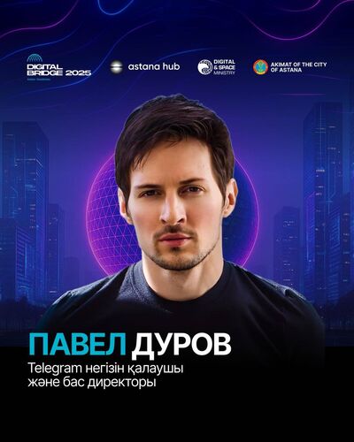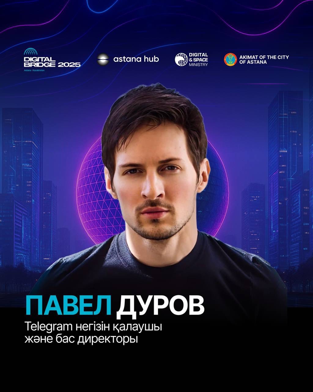 Основатель и генеральный директор мессенджера Telegram Павел Дуров выступит на международном технологическом форуме Digital Bridge в Астане. Информацию подтвердил министр цифрового развития, инноваций и аэрокосмической промышленности Жаслан Мадиев.