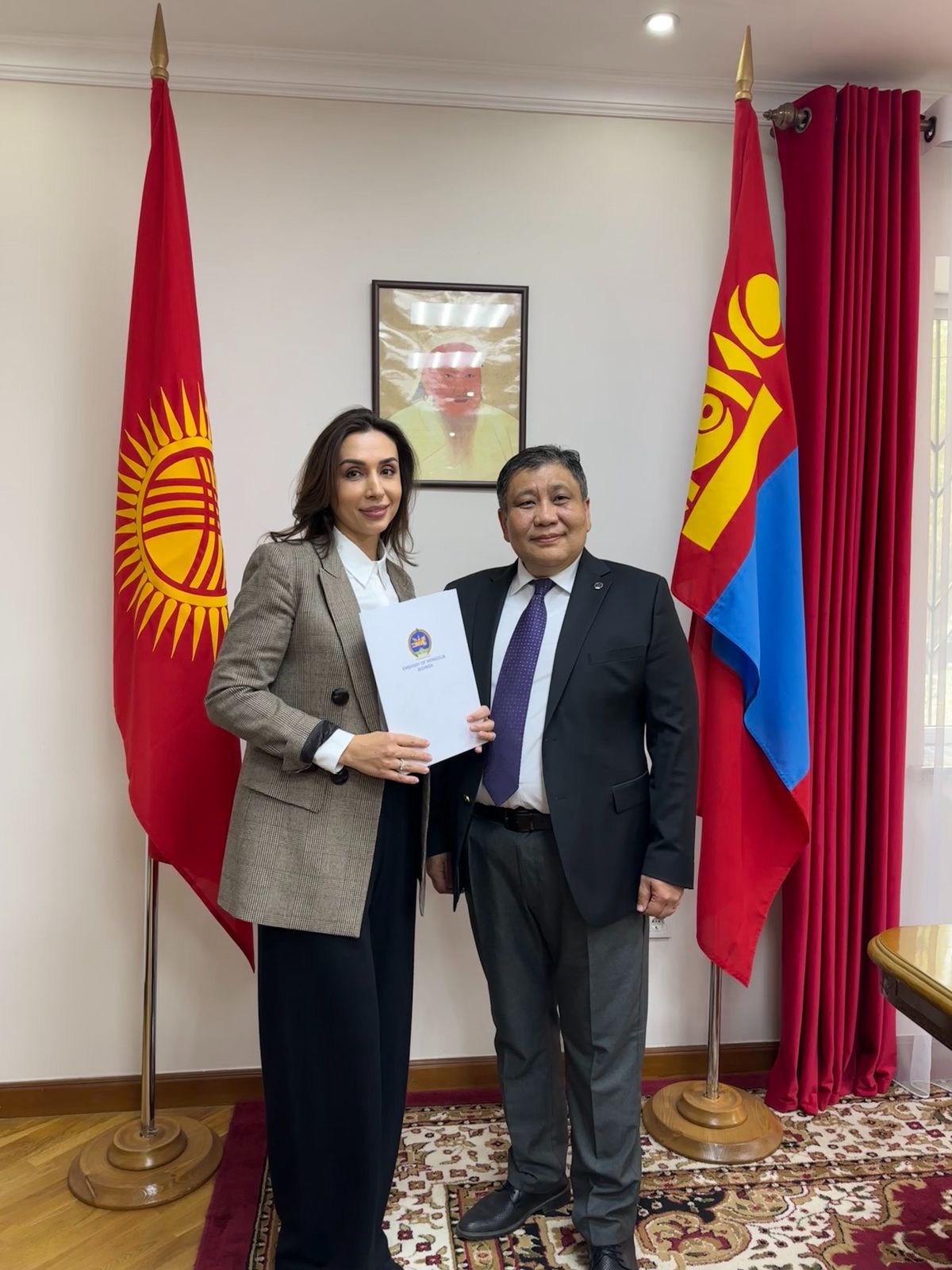Учреждение института почетного консульства позволит активнее содействовать развитию деловых связей, поддерживать совместные инициативы и оказывать помощь гражданам Монголии, проживающим и работающим в Кыргызстане.