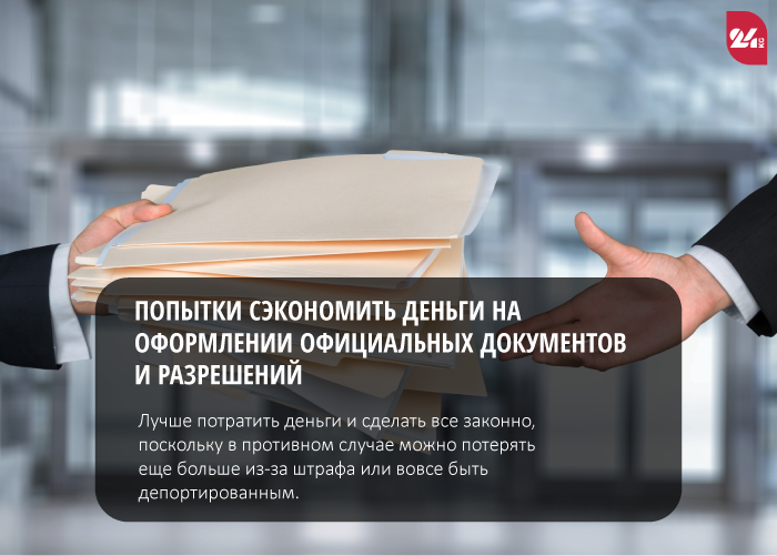 Эксперт по личным финансам отмечает, что разрешения, налоги, медицинское страхование и так далее — это обязательные расходы и избегать их не стоит. Например, из-за отсутствия официального разрешения на работу мигрант может быть оштрафован на сумму, более высокую, чем стоимость получения разрешения. Известны также случаи, когда мигранты покупали разрешения через знакомых за более низкие цены, но потом выяснялось, что они были поддельными. Таким образом, появляется риск быть депортированным.Ошибка № 4